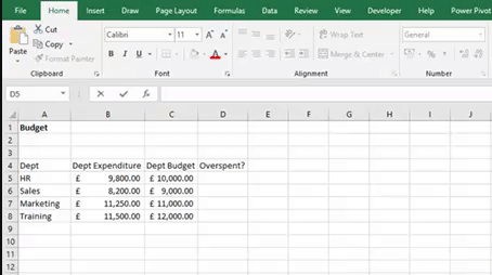 An IF formula is where we give Excel a statement and it will return an answer based on that statement. For example, if expenditure is greater than budget then return overspent, otherwise return under budget.