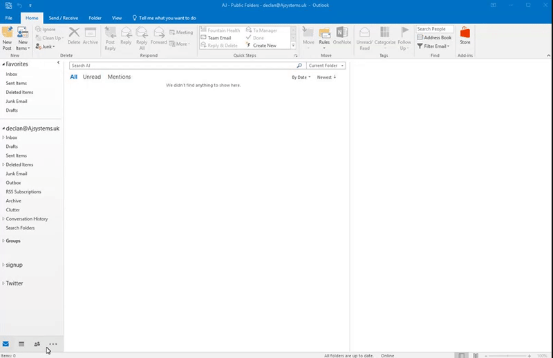 Start by swapping your outlook view to Folders by using the 3 dotted icons and pressing the 'Folders' option in the list.