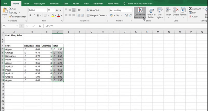 If you want figures that are between two set values to go a certain colour, then use the Conditional Formatting tool. Conditional Formatting allows you to add colour to a spreadsheet based on a condition.