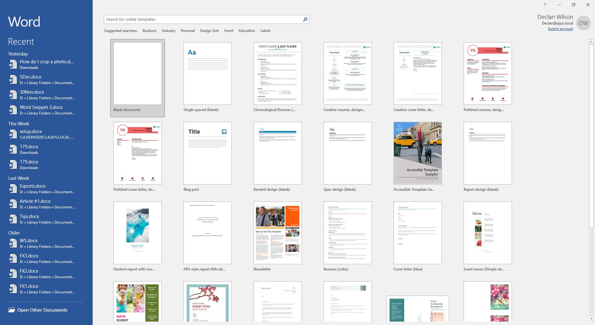 3. Double click onto a template, if it’s the first time you use this template, word will download the selected template for you to use again.